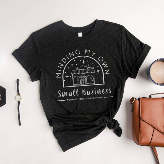 Minding My Own Small Business Tee (Heather Black, Mauve, Heather True Blue)